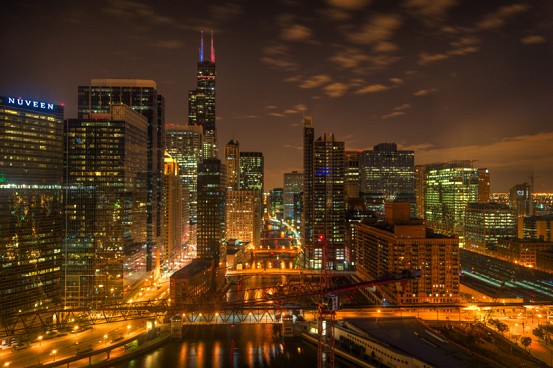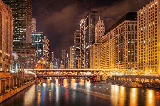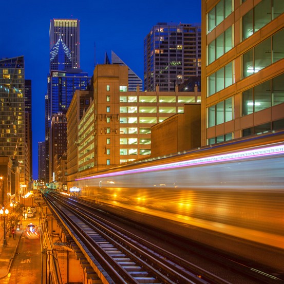 Let the light of the city shine in the ultimate version of long exposure photography. In this case, the Chicago skyline. The tracks of the Ogilvie Transportation Center are just visible at right.