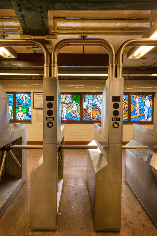 As has been readily established on this blog, I’m not much of a fan of subways. The subterranean lack of light has never been of much intrigue to me, though I do find some interest in the stations located above ground. Many of New York City’s above-ground subway stations feature attractive stained glass art, through the Arts for Transit program. While I thought it might be interesting to do a post featuring some of the attractive stained glass found on the subway, I ended up with a whole lot more material than I anticipated.