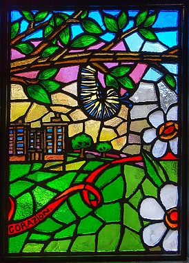 Found in the mezzanine area of the station, the glassword at 183rd Street depicts scenes from the area, both from the past and present. The title of the piece derives from the symbol depicted on the first panel of the piece – it is the Mohican “Many Trails” symbol. The meaning behind the symbol is described as thus: