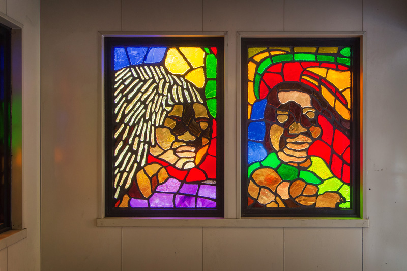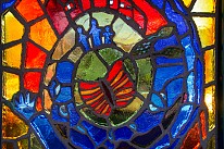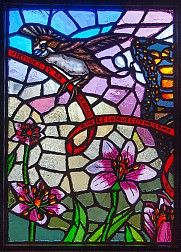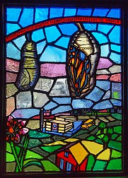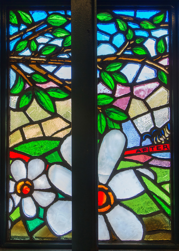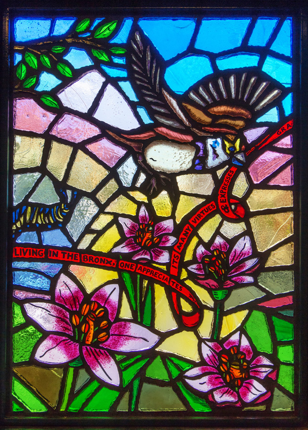 Next along the line is “Views from Above” – which like Mount Eden Avenue is located on the platform and also downstairs in the station’s entrances. Bursztyn makes a little play on how the stations at the end of the 4 line are all elevated, depicting plants and animals in a similar elevated perspective. The brilliant colors of the faceted glass echo the colors of the sky seen from the elevated platform during sunrises and sunsets.