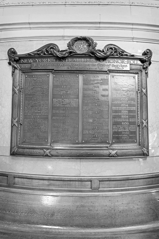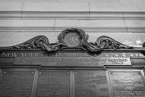 Not every story may have had a happy ending – such as the case of Nauman, and the second young boy in the Bowen story, but all Medal of Valor recipients showed immense courage in their endeavors. Each name on the plaque holds a unique story – from Edwin Ballou’s agonizing crawl through the scalding steam of his damaged locomotive, to Giacoma Mazzoli’s rescue of a suicidal woman waiting to be hit by a train. Even some of the medals have stories of their own – like the one awarded to engineer Henry Mansfield, which was stolen and later found and returned to Mansfield’s widow 33 years after the theft. Perhaps thus forward you will see a tiny part of Grand Central in a new way – for the plaque, when you gaze upon it, bears not faceless names of long dead railroad employees, but the names of heroes, (hopefully) forever recorded.