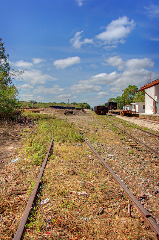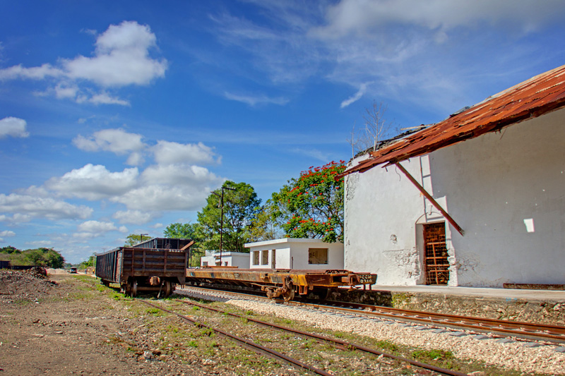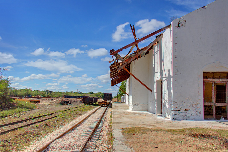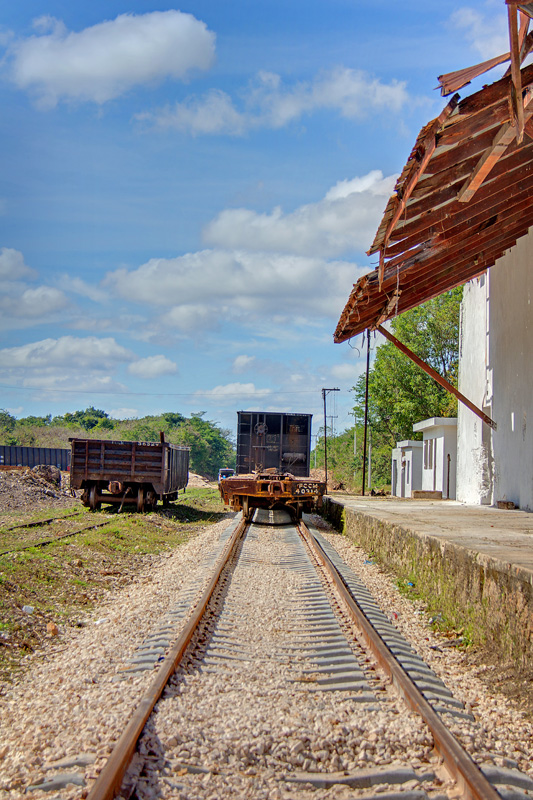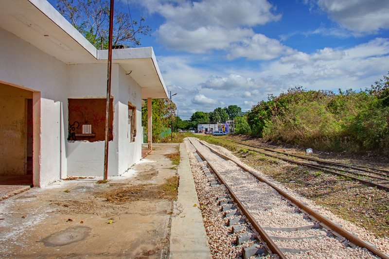 As an escape from New York’s winter cold, I recently spent a week in Playa del Carmen, Mexico. Considering that I like to visit diverse places such as Alaska in the winter, and Chernobyl, a beach locale like Mexico sounds relatively normal trip. The area doesn’t have much in the way of trains, either, which sounds really normal. However, a few hour trek toward the ruins at Chichén Itzá on the libre (free road), as opposed to the cuota (toll road), will yield you an encounter with a lone grade crossing just west of the city of Valladolid. This rail line extends from Valladolid to Yucatán’s capital of Mérida, and although freight runs are semi frequent, regular passenger service is long gone. Many of the former train stations are abandoned and in disrepair, such as the one in Valladolid, which I found after a bit of poking around.
