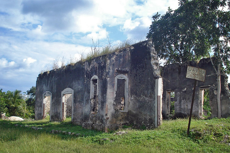 Middle left: A train operates alongside a road in Mérida, photo by Raymundo Tziu Cuxim. Middle right: The crumbling former station at Uayma, photo by Ferrobeto.