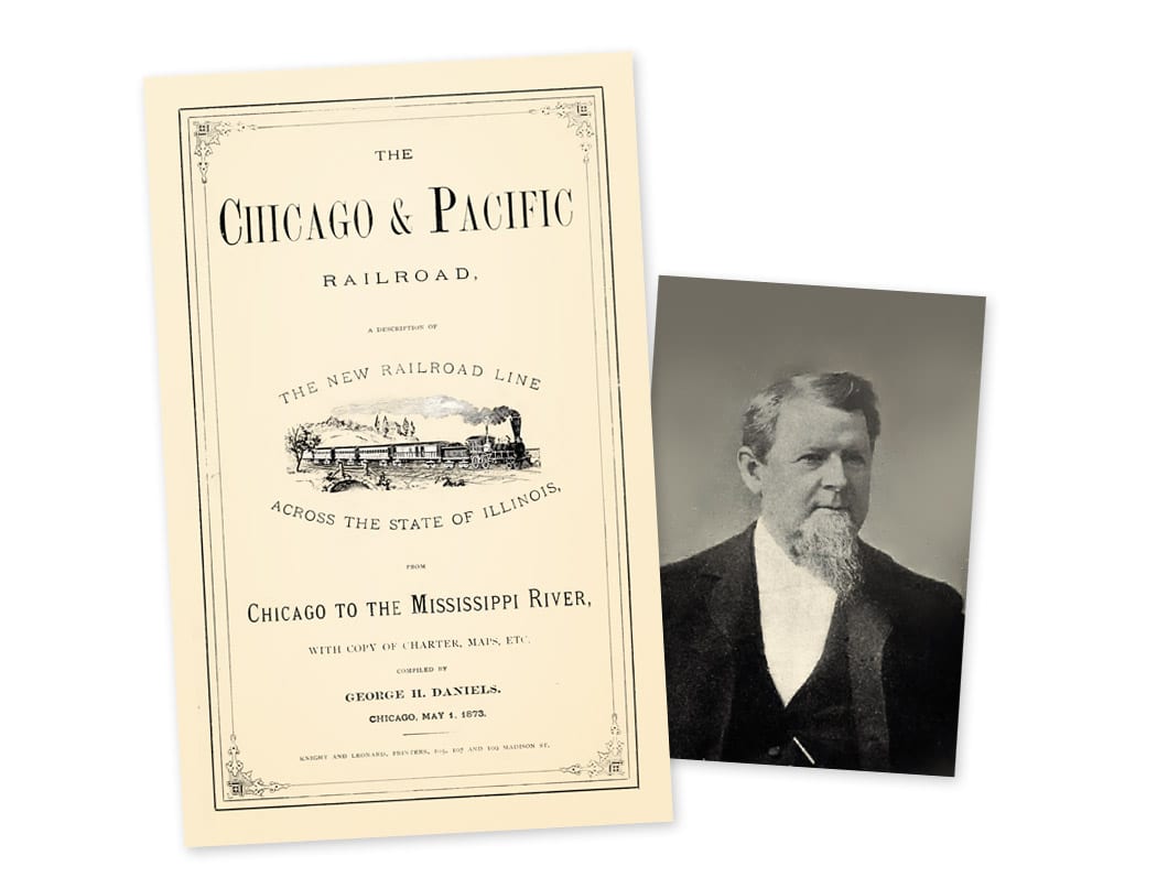 One of the early publications by Daniels for the Chicago & Pacific, and his photo from 1889
