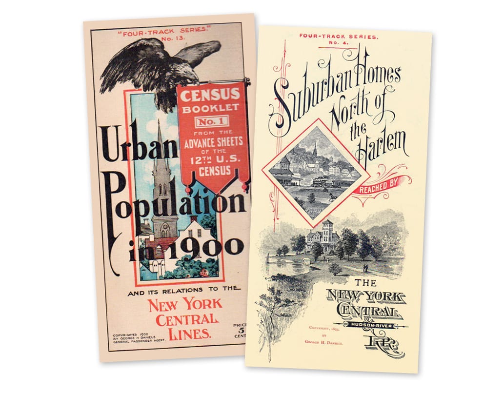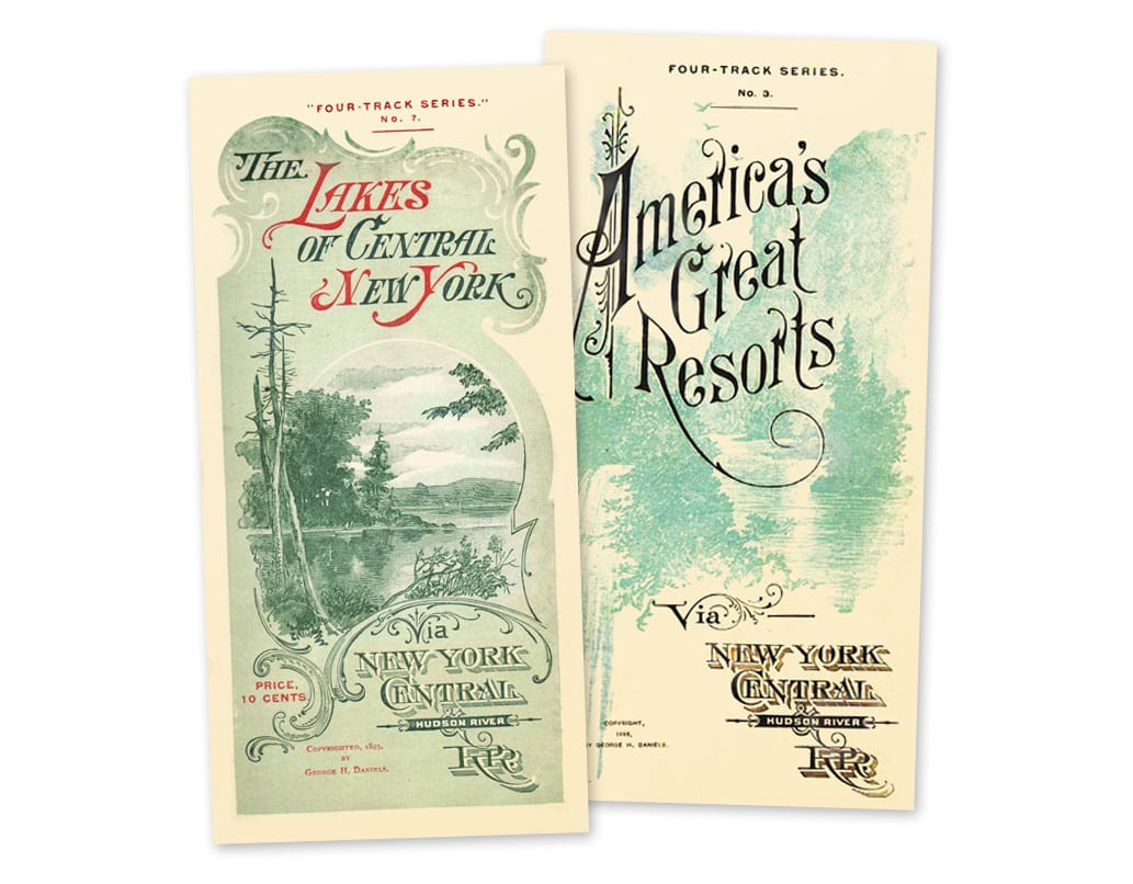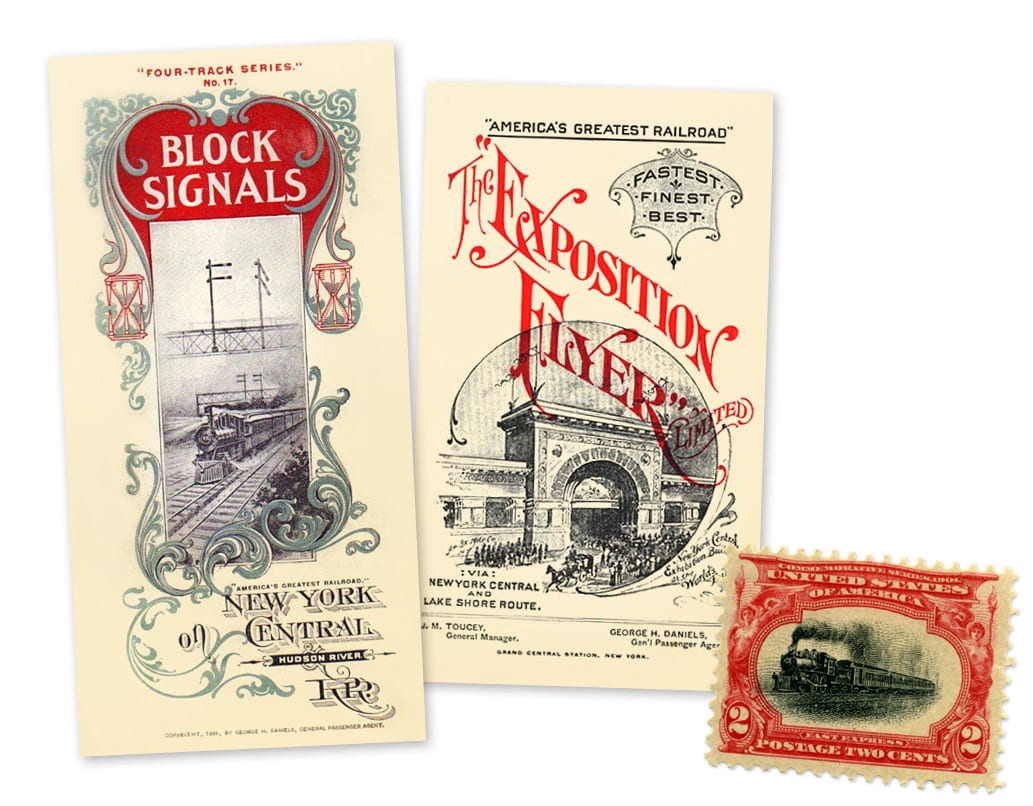 Brochures published by Daniels during his tenure as General Passenger Agent, and the special stamp featuring the Empire State Express