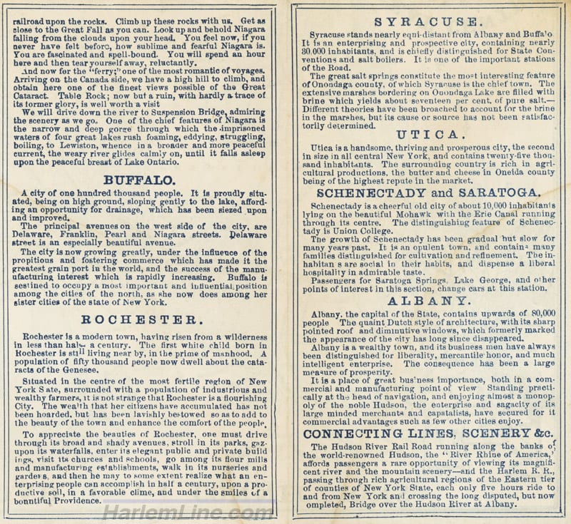 At this time the New York Central was a mere double track railroad, but it boasts that it is, “regarded in both this country and in Europe, as one of the most important, best managed, and safest lines of iron roads now in existence,” where “so few casualties occur.” Well, that’s one way to market your railroad…
