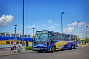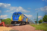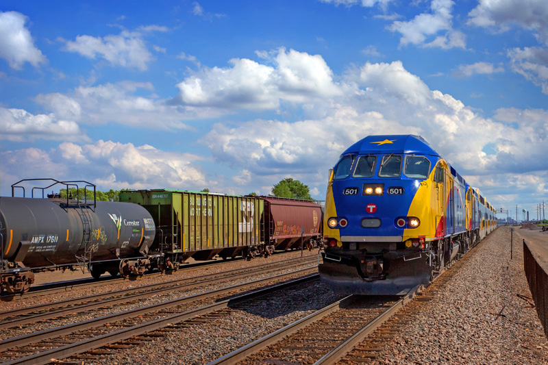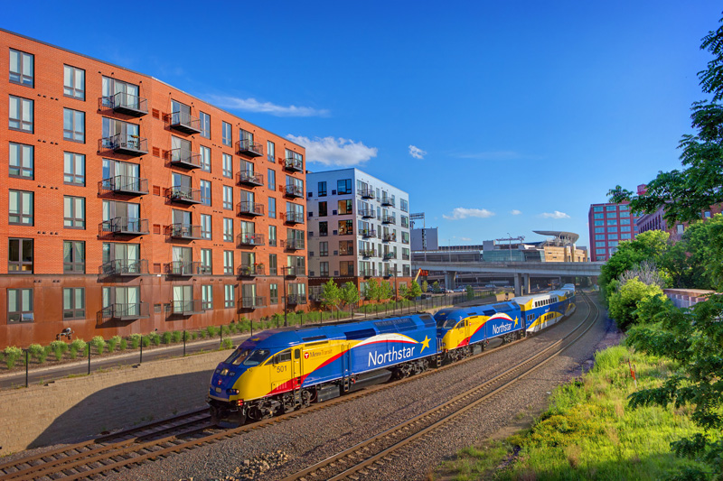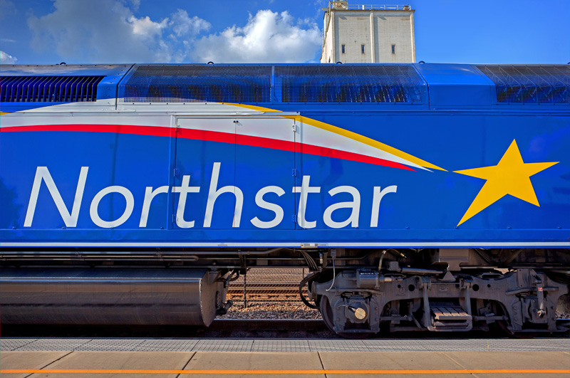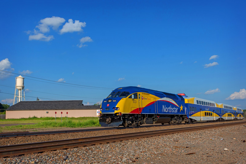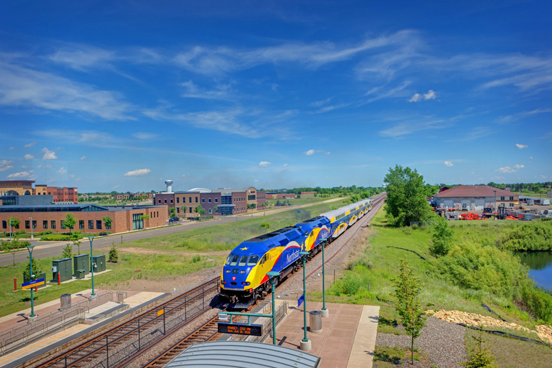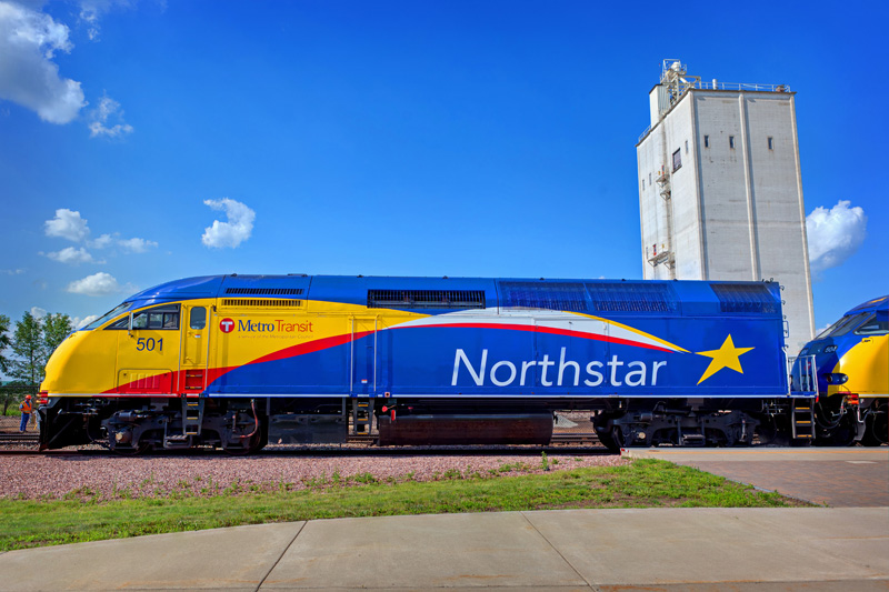 During my first visit to Minneapolis several years ago, I took lots of photos of the new Hiawatha light rail line (now known as the Blue Line), but completely missed out a chance to check out their commuter rail. On my more recent trip to the Twin Cities, I made sure to see the Northstar. A few trains in the state have used variations on the name Northstar, including a now-defunct Amtrak train, a name which derives from Minnesota’s nickname as the North Star State, as it is the northernmost of the contiguous US states. Although it might not be glowing, this Northstar, is hard to miss, painted in an attractive blue, yellow, and red scheme.