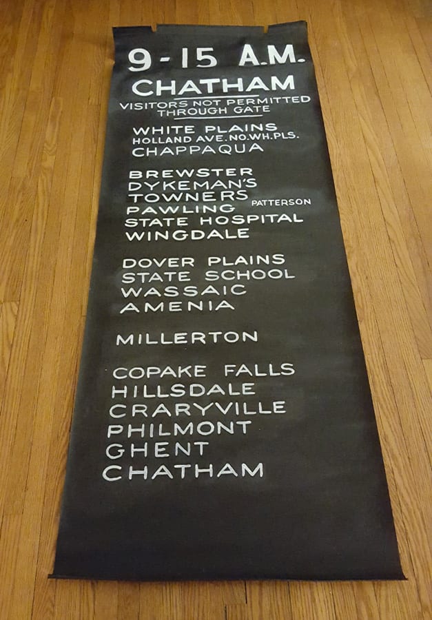 With the aid of old timetables, I was able to track the history of the banner, and the trains it once represented. Though the train number changed a few times, for the majority of it’s life, the it was for a Sunday-only morning train from New York to Chatham.