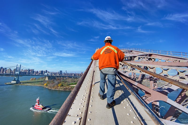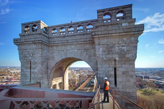 Climbing up the steel span of Hell Gate bridge