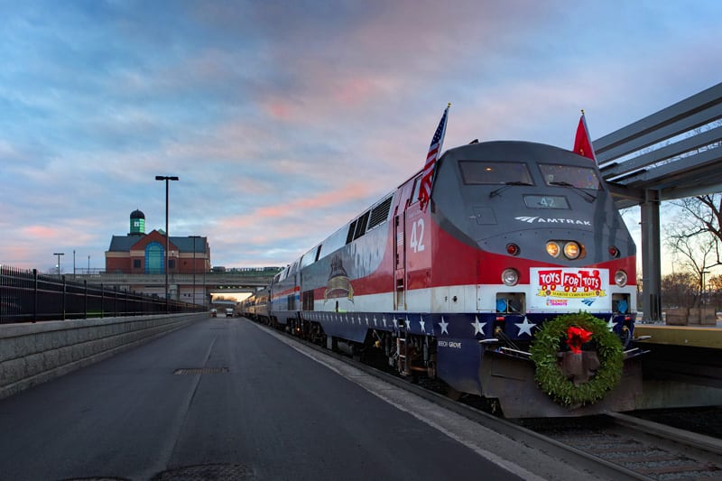 The Toys for Tots train at sunrise, about to leave Rensselaer