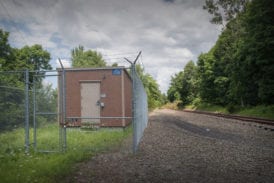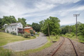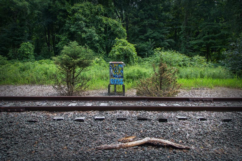 Although one of the next notable places along the line is Hopewell Junction, I’ve written about it before, so in this journey I’ve skipped ahead to Fishkill. One of the difficulties of reactivating the line are the many grade crossings, most of which no longer have gates or flashers. One of the most major crossings is here in Fishkill, at Route 9, where some flashers still remain, but there are no gates.