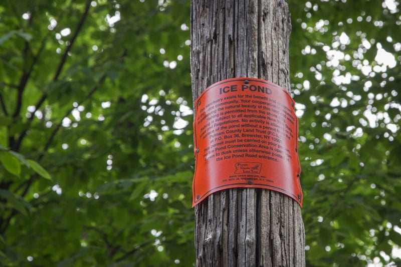 The start of our explorations begin where the Harlem and Beacon Lines meet, a little less than halfway between Southeast and Patterson. As mentioned previously, there is no wye here, so it would be difficult to run trains from the Beacon south along the Harlem toward Brewster without a time consuming changing of ends. The lines meet and then diverge again, running along either side of the Ice Pond. Just beyond that body of water, the Beacon Line crosses over the Harlem Line and continues west, while the Harlem continues north. Here is the domain of fishermen, who spend entire weekend days with their pickups parked alongside the line.