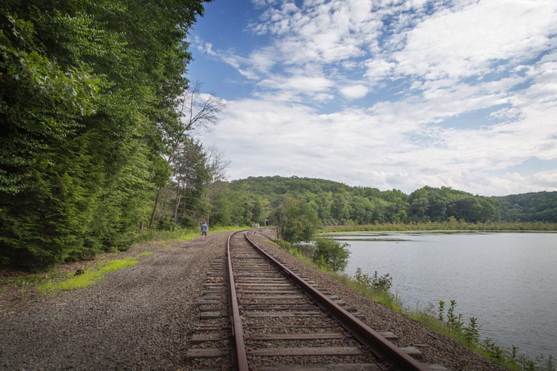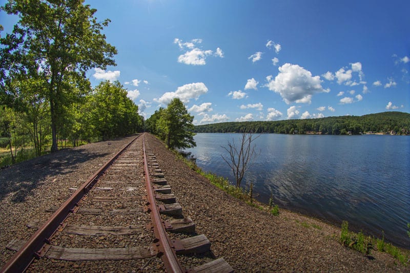 As the Beacon Line finally diverges from the Harlem, it passes through parts of Patterson before arriving at Holmes. The line continues past several swamps and streams before reaching Whaley Lake in Pawling.