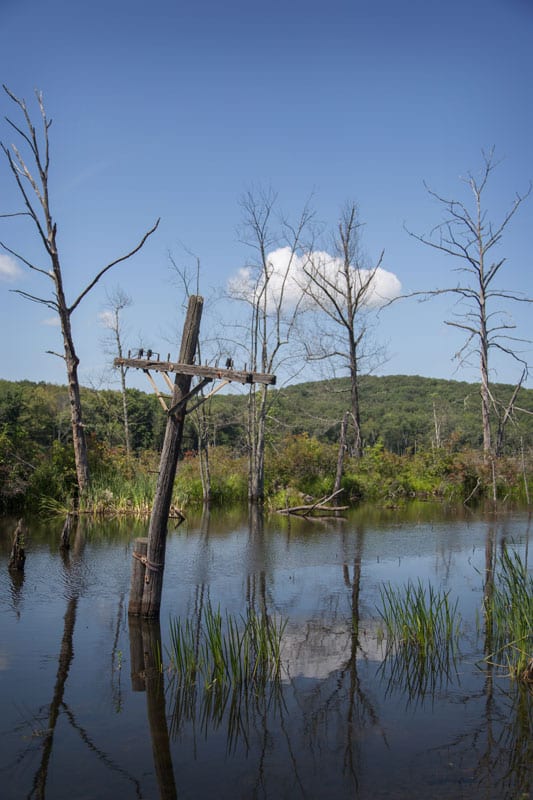 Just beyond Whaley Lake is an area known as Whaley Lake Stream. One of the line’s most precarious conditions exist here – a washout would need to be repaired before any service was attempted. For now, Metro-North has blocked the washout with two large concrete blocks, preventing access not to trains, but mostly to the ATVers that can frequently be found along this section of track.