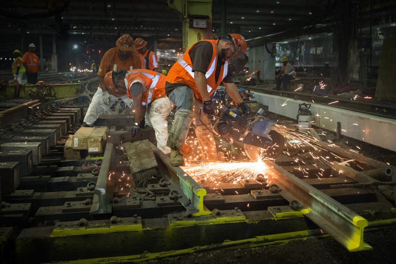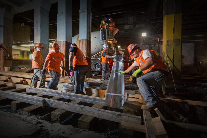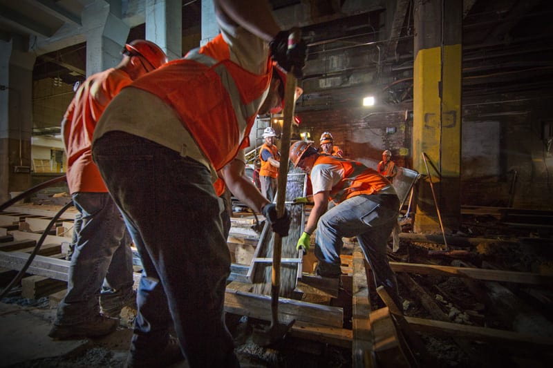 Several photographers have gotten the chance to document the milestones happening in Penn Station, and I am lucky enough to be one of them. If you have seen Amtrak’s Media Images site or the new NYP Renewal Update video, you may have already seen some of my photos. Now, perhaps, they feel a little bit more real. If you’re like me, you may gain a new respect for the hardworking folks renewing the station, investing quite a bit of sweat in the wee hours of the morning.