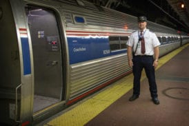 Waiting for the first train, as it is recorded on non-Amtrak territory