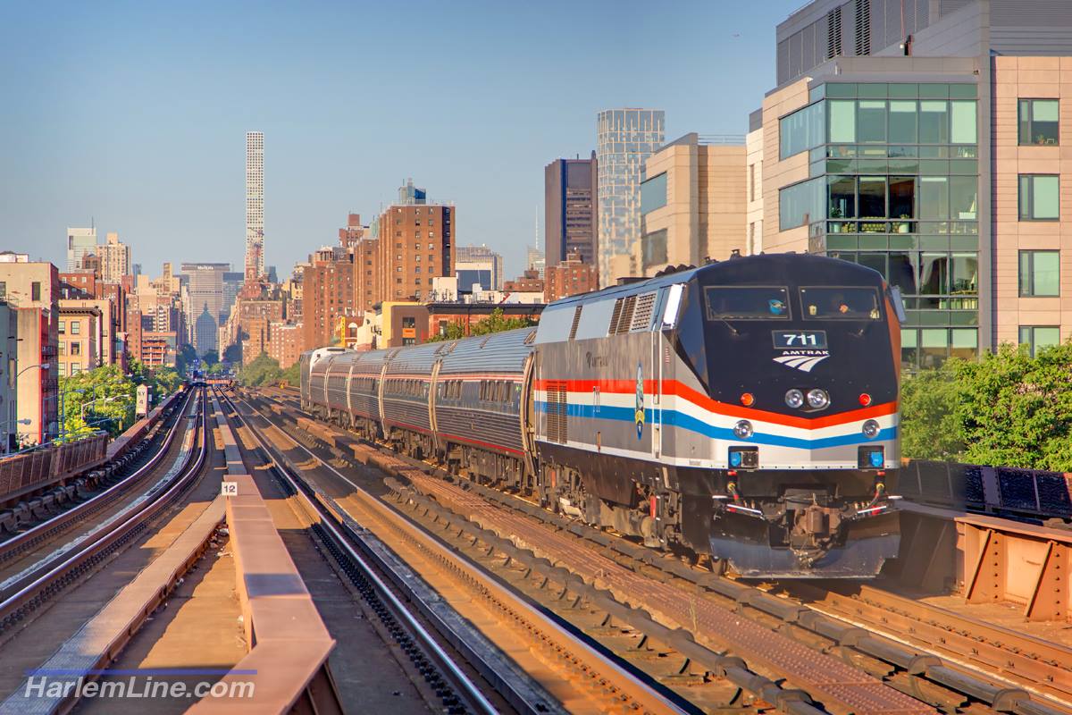 As part of the Penn Station Renewal program, six Amtrak Empire Service trains have been diverted to Grand Central Terminal. This was the first Amtrak scheduled revenue service train in 26 years to use GCT, or as Amtrak has dubbed it, NYG. Of course, I Ride The Harlem Line captured the first train in Harlem, with the backdrop of New York City behind.