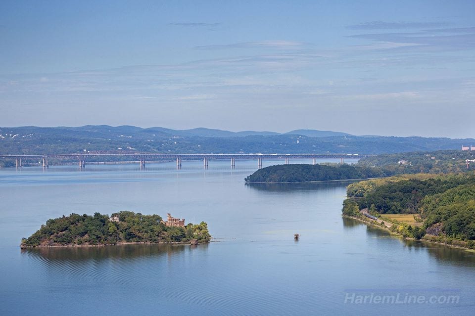 Amtrak’s Train 290, the Ethan Allen Express, is just barely visible as it approaches one of my favorite places along the Hudson, Pollepel Island, home to Bannerman Castle.