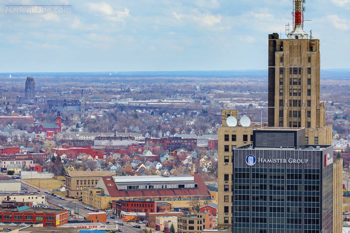 How exactly does one illustrate the challenges facing a revival of Buffalo Central Terminal in one photo? This may be as close as you can come. The Terminal, as seen from Buffalo’s City Hall, is quite obviously removed from the city’s core downtown area. Visible in the photo are the two most notable structures completed in Buffalo in 1929, though both in the art deco style, they may almost be worlds apart in terms of geography. The Rand Building is prime real estate in Buffalo’s downtown core, while the Terminal is approximately two and a quarter miles as the crow flies in what one can only describe as a far rougher neighborhood.