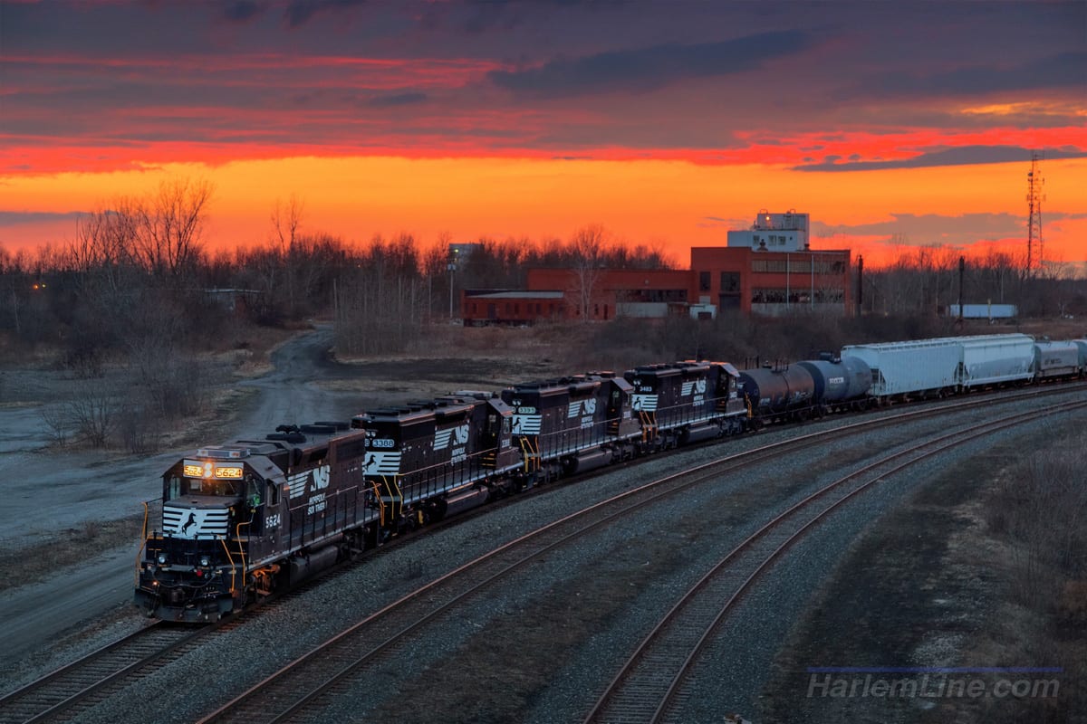Norfolk Southern makes its way through Fort Erie, Canada at sunset – bound for the Niagara River just a few meters away, and the border crossing into the United States.