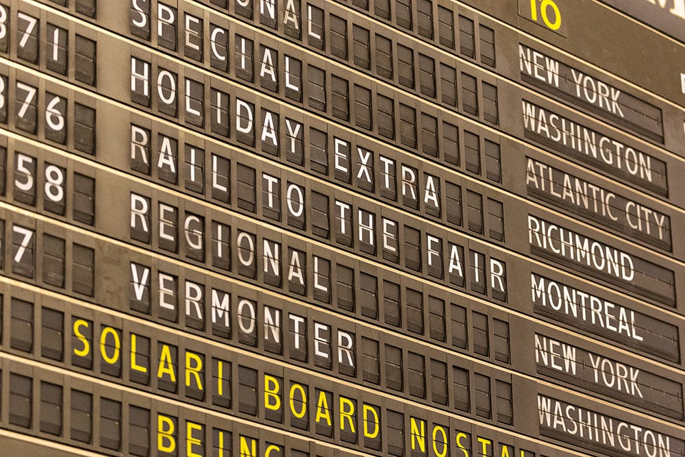 The Trenton, NJ, station still has a working Solari at the main entrance.