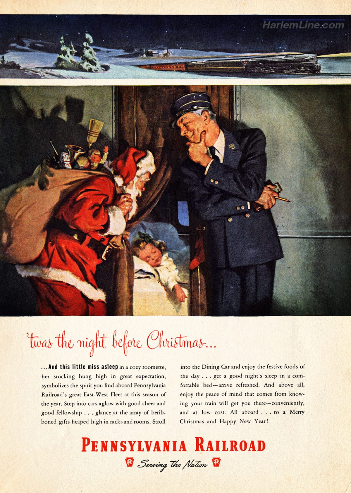 If you believe the Pennsylvania Railroad, Santa Claus visits all the good boys and girls while they are asleep tonight, even if they happen to be in a railroad sleeping car. Does that make conductors and trainmen Santa’s helpers?