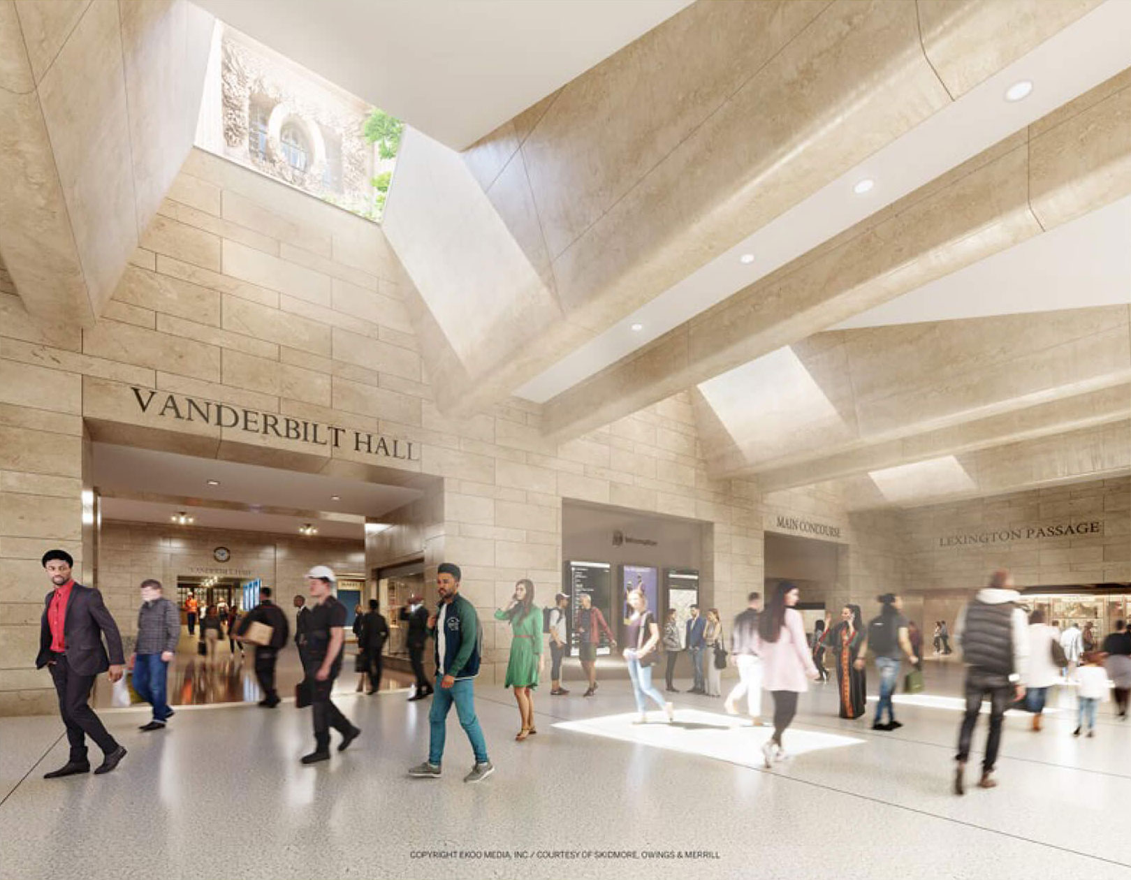 Thankfully, adjustments have been planned for the passageways that connect the current Grand Hyatt to Grand Central. Ceilings will be raised, and natural light will be allowed to shine through. Pulling the skyscraper back from the property line has been mentioned several times already, yet that simple consideration yields a multitude of benefits. In this case, the new open space above allows skylights to be installed, flooding the hallways with refreshing natural light. Beyond sunshine, the strategically placed skylights will align with Grand Central and provide another portal to rarely seen views of the Terminal’s exterior. In addition, several retail spaces will be removed to make the area feel less claustrophobic, and to create a new access hall for the subways.