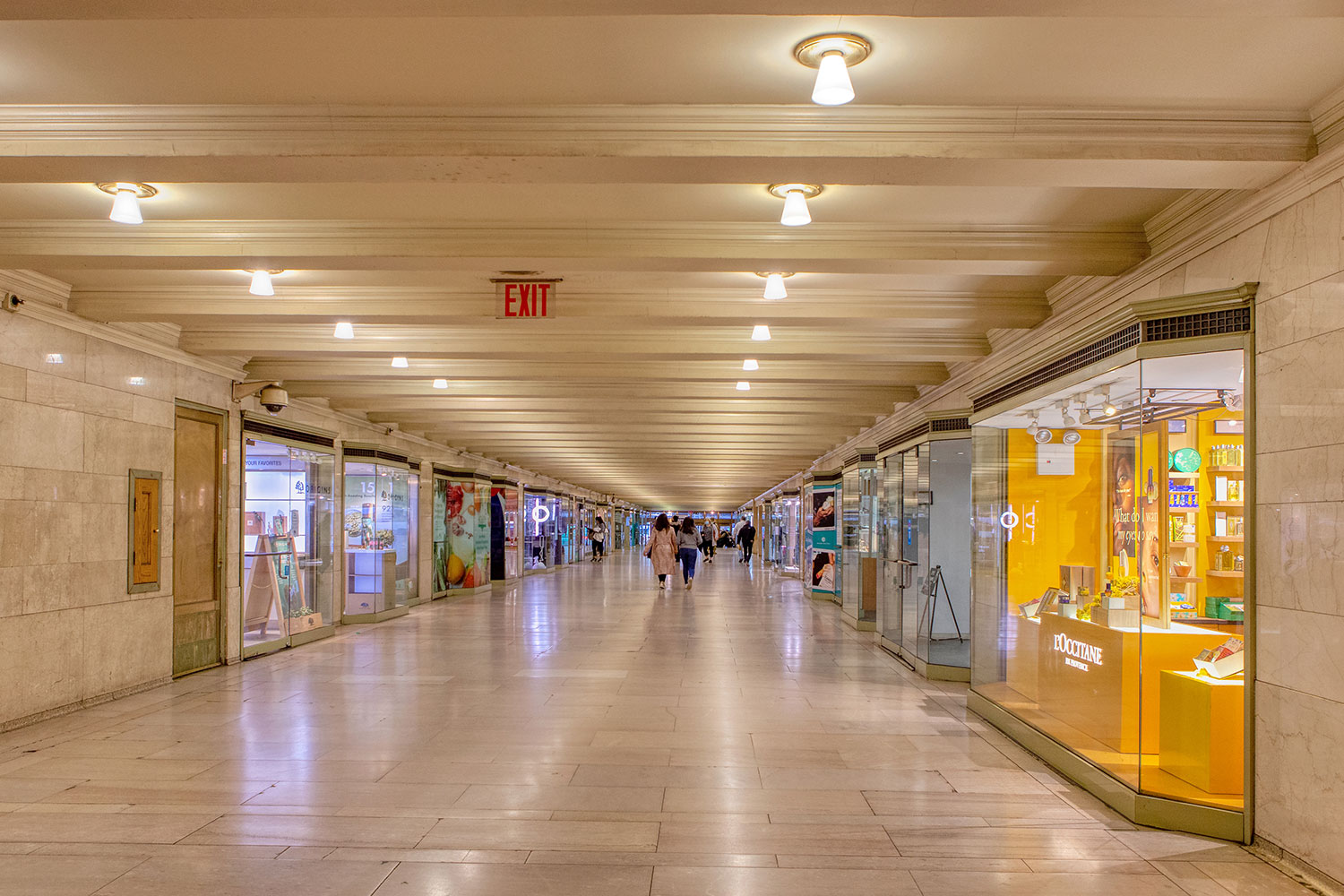 One of the perks of Grand Central’s design, and a bonus for pedestrians on foul weather days, is its interconnectedness with its neighbors. The stature of the Commodore was certainly elevated by the fact that a visitor never had to step foot outside after getting off their train, one just simply walked through the connecting passageway and straight up to the hotel. Although those links still play a major part today—joining Grand Central to Lexington Avenue at multiple points, and 42nd Street through the hotel—they aren’t all as beautifully designed as the Terminal. Despite being in more of an art deco style, the Graybar Passage is a fitting connector, featuring intricate chandeliers, high ceilings, with even a mural on part of it. Meanwhile, the Lexington Passage isn’t terrible, but its low ceilings have a foreboding quality that fails to fit with the majesty of Grand Central.