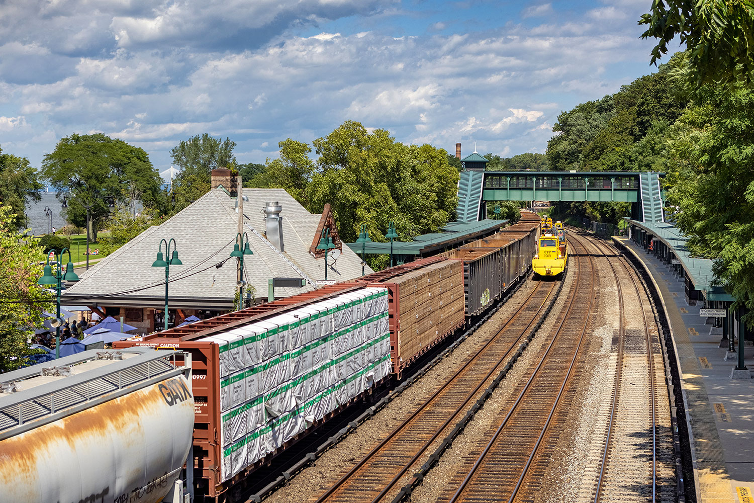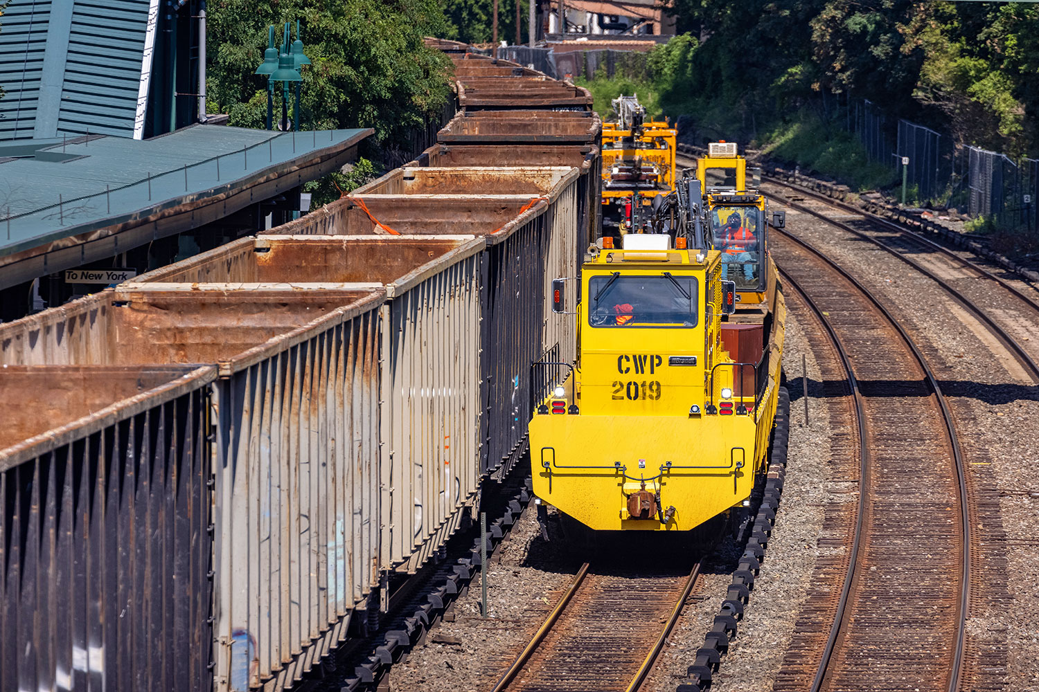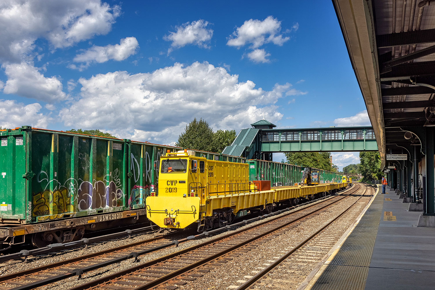 Yesterday afternoon at Dobbs Ferry I watched some of the work going on, as well as some of the first test trains to operate ahead of the service restoration. CSX had apparently been champing at the bit to get back to it (gotta get that garbage!), and was one of the first trains operating along the line. It was a nice surprise to see, as I don’t think I had ever photographed a daylight freight on the Hudson in good light.