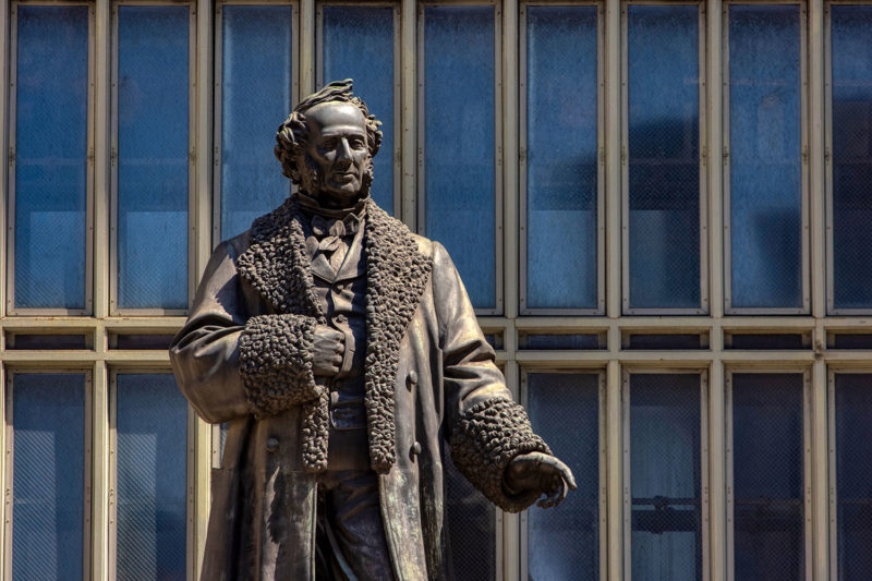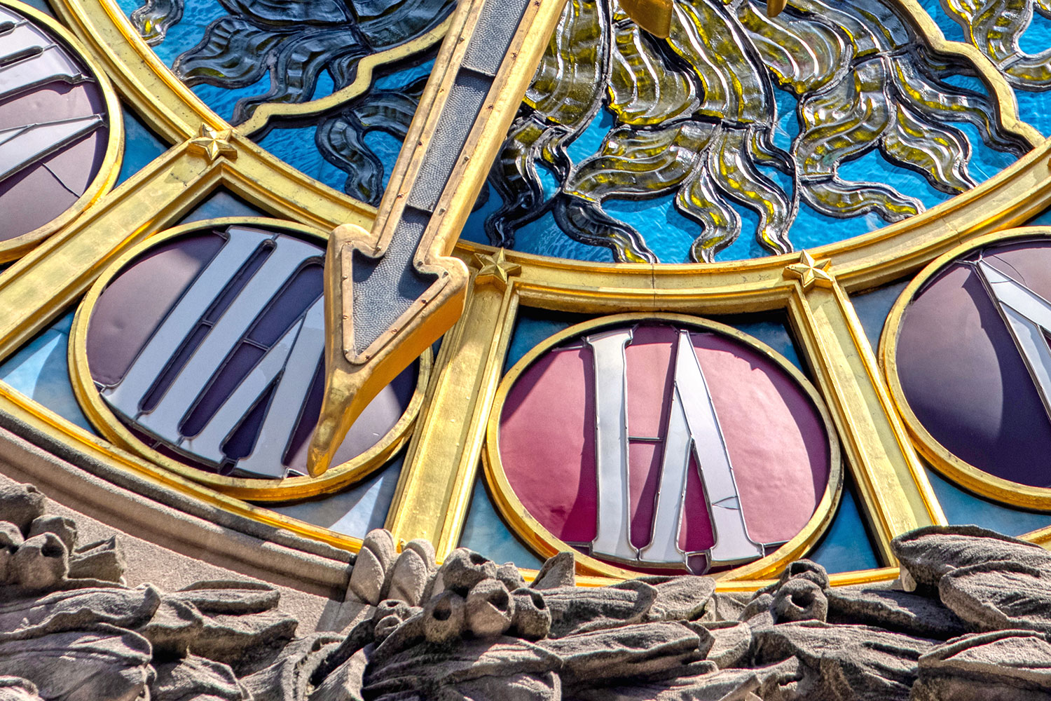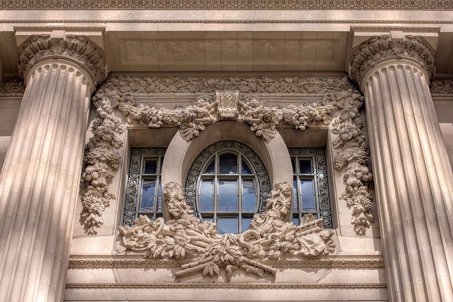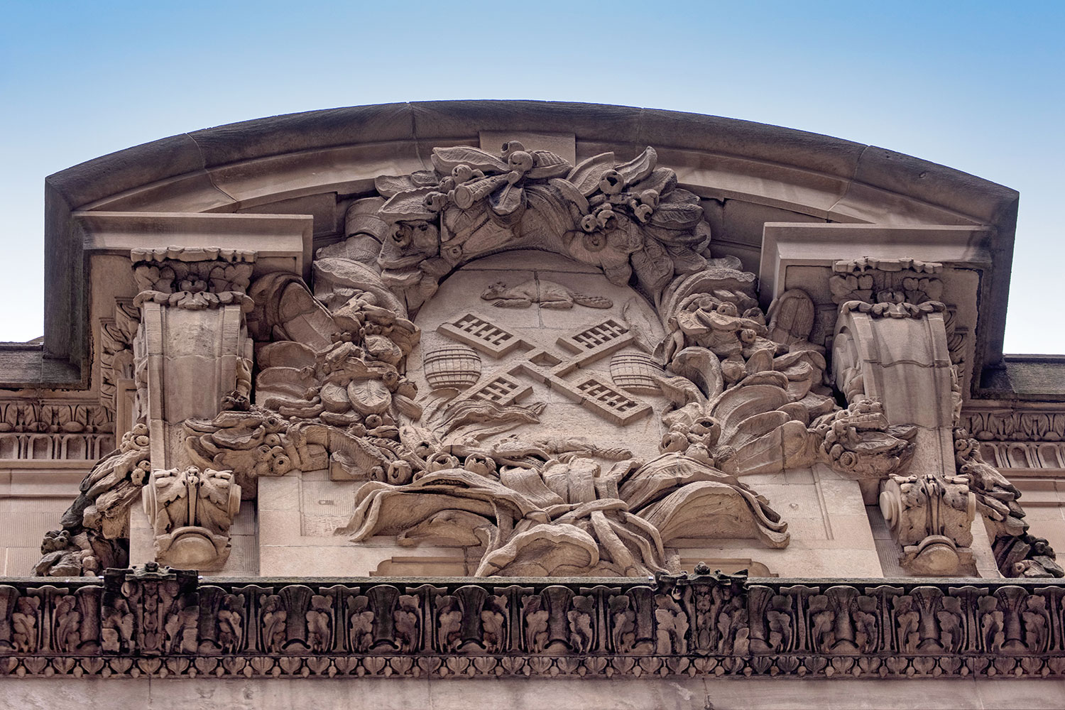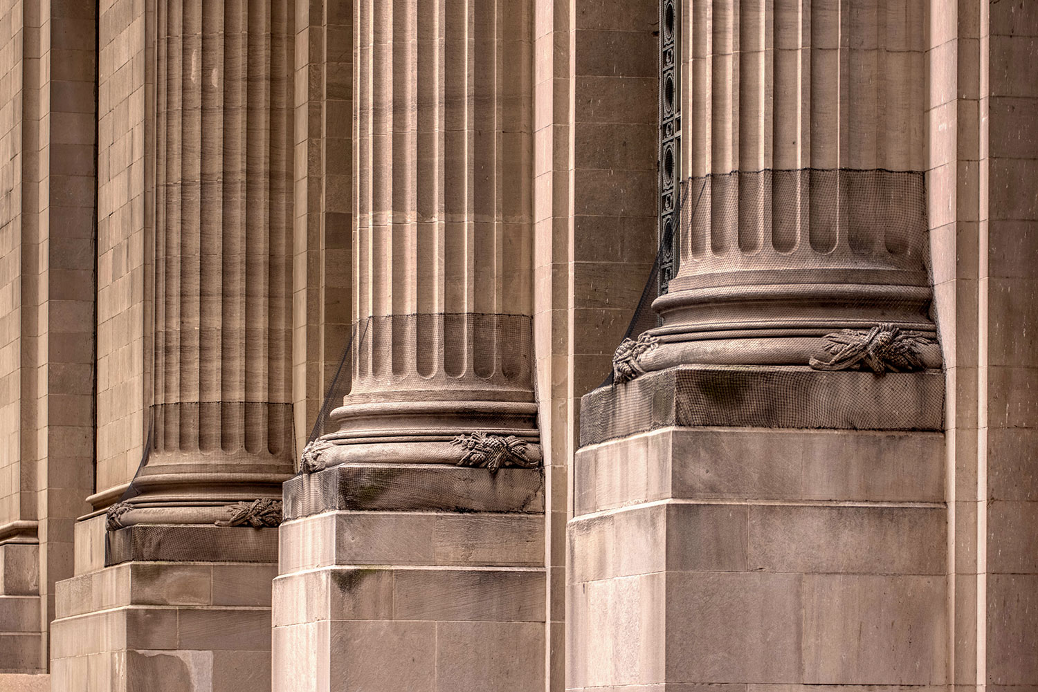 Below you’ll find a collection of my favorite images from that day, including glimpses of the new One Vanderbilt, and reflections of Grand Central across the now-closed Grand Hyatt, which won’t be visible for much longer. The photos also revive a long-talked-about point among mythology-lovers regarding Grand Central and who exactly appears upon the façade. Though architect Whitney Warren specifically identified the sculptural trio as Mercury, Hercules, and Minerva, the gear, hammer, and anvil symbols are more commonly associated with the Roman god Vulcan (or Hephaestus of Greek mythology). Hercules certainly seems like the more glamorous of the two, fitting in perfectly with the “Vanderbilt aesthetic,” yet Vulcan, god of metalwork, seems appropriate for a mighty railroad building links of iron and steel that connected the ever-growing United States. You’ll also find that another significant portion of the Vanderbilt aesthetic—the acorn and oak leaf motif—extends to the exterior of the station, including the streetlamps.
