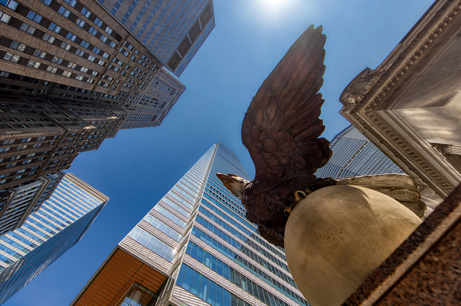 Back in April I challenged myself to capture the details of the interior of Grand Central Terminal using only my 70-300mm lens. Earlier this summer I revised the challenge to capture the Terminal’s exterior during Summer Streets, an annual August event that closes seven miles of New York City’s streets to cars and opens them to bicyclists and pedestrians. The route includes the Park Avenue Viaduct, and allows unique chances for photography of Grand Central and the former New York Central building (sorry Leona, but we don’t call it that other name here).