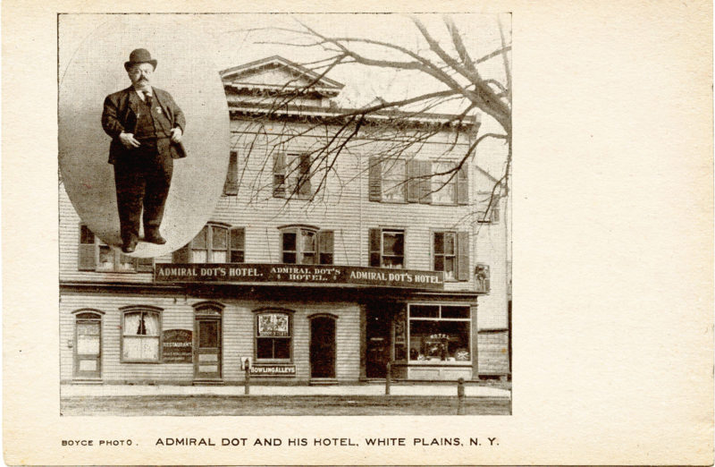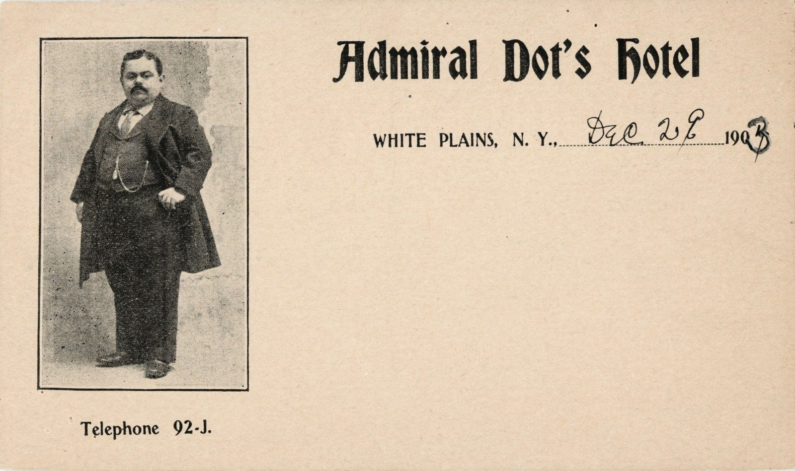 Owner and operator Leopold Kahn was a quasi-celebrity, previously exhibited as a circus oddity along with several other “midgets” with similar military-esque monikers. The Admiral Dot appellation was given to Kahn in his youth by showman P.T. Barnum himself. Although from a modern lens such “freak show” exhibitions seem ethically problematic, at the time displaying such abnormalities for amusement and profit were commonplace. Dot, who at age seventeen was said to only weigh twenty pounds and was just over two feet tall, was shown alongside “Siamese twins“, a horned woman, and a “man monkey,” among many others.