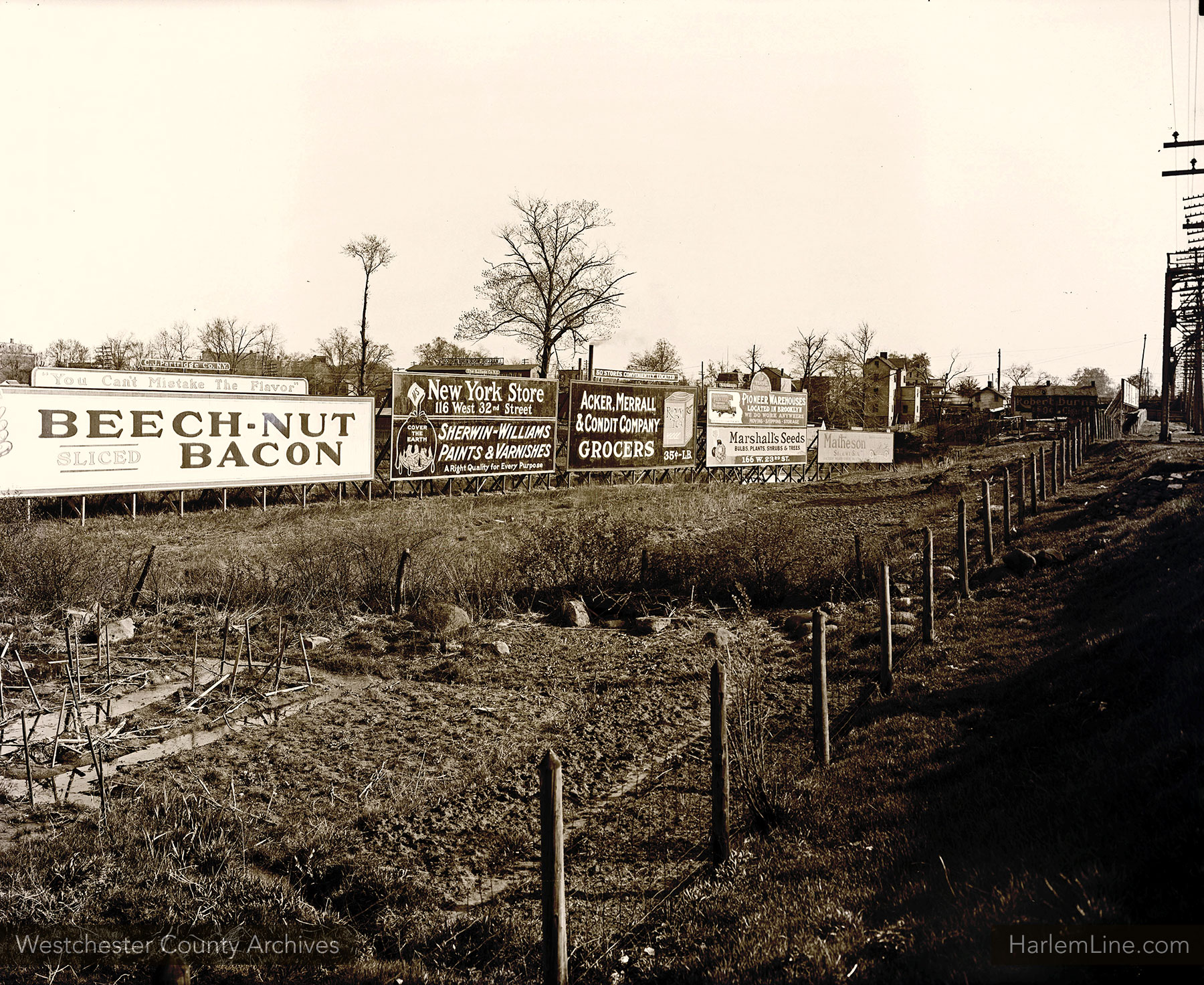 Years of factory waste and the direct dumping of sewage left the Bronx River a foul and polluted waterway, deemed a “serious menace to public health.” The Bronx River Parkway Reservation project, which began in 1906, had several major goals, prime among them to clean up the river and to create a modern and efficient roadway from which to enjoy the scenery. As the railroad paralleled the river in many areas, the restored vistas would be visible to those onboard trains as well. In fact, some of the perceived pollution were the miles of billboards erected on the banks of the river and facing the tracks, advertising directly to the captive audience of train riders.