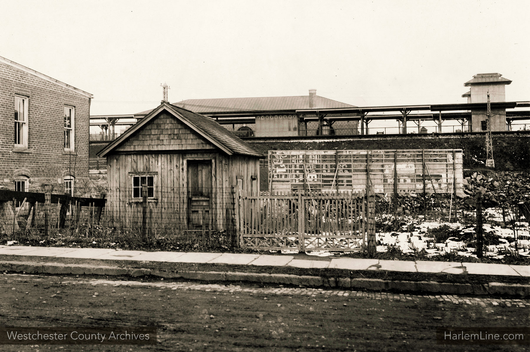 1910 map showing the railroad’s route through White Plains. The small yard at the south end had disappeared before 1960, and the one at the north end was gone in the late 1960s. This land would become the site of the current station in White Plains.