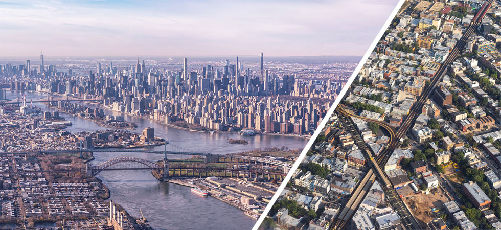 Wow, neat photos. They illustrate the incredible high density of New York City–houses and tall buildings jammed together.