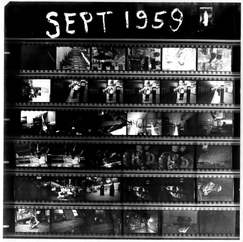 A contact sheet of photographs from September 1959. Photos include the 59th Street subway and Pennsylvania Station.