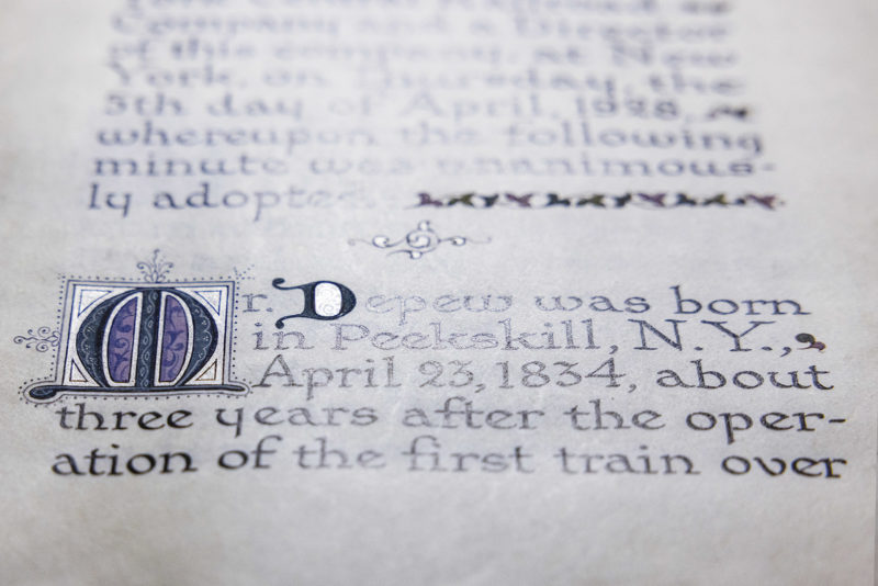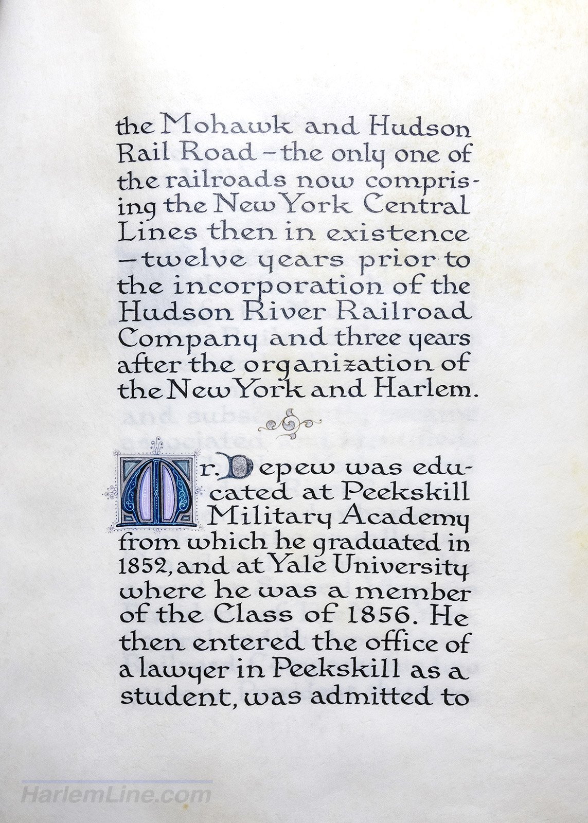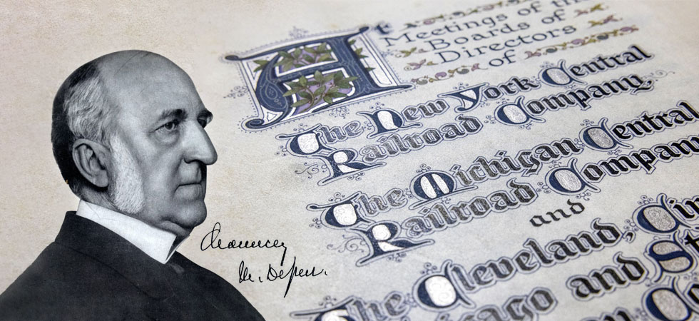 When Depew started at the Harlem in 1866, Vanderbilt’s railroad holdings consisted of only around two hundred and fifty miles of territory. Ultimately, Depew would end up overseeing a massive railroad system of over twenty thousand miles as President and Chairman of the Board of the New York Central Lines. Depew’s legacy has been commemorated in the village of Depew in Erie County (where today you’ll find Amtrak’s station for Buffalo), several streets including Depew Place outside Grand Central and Depew Street along the Harlem in Pleasantville, and in a unique old manuscript, which I share with you today.