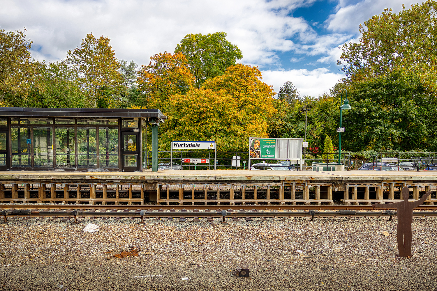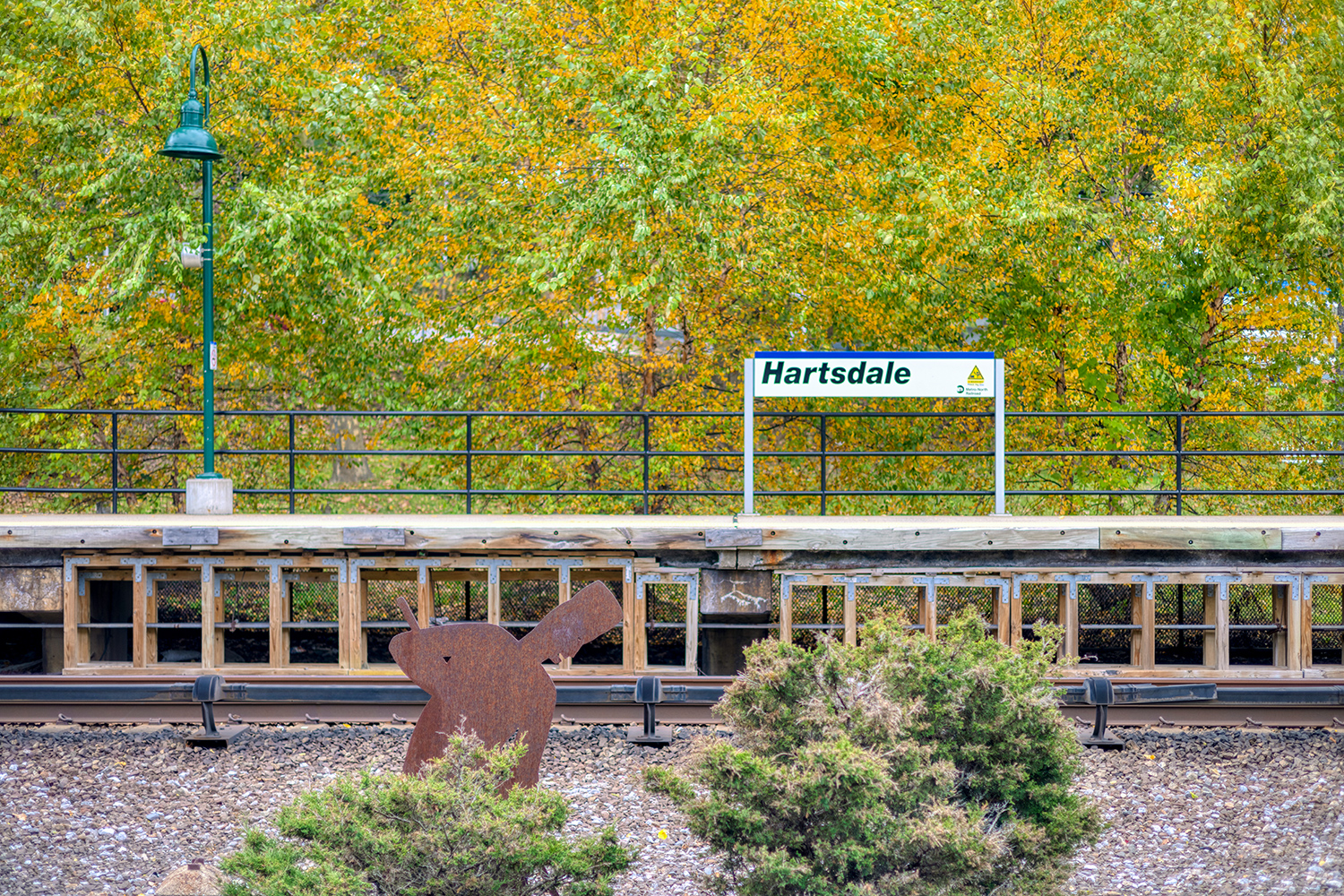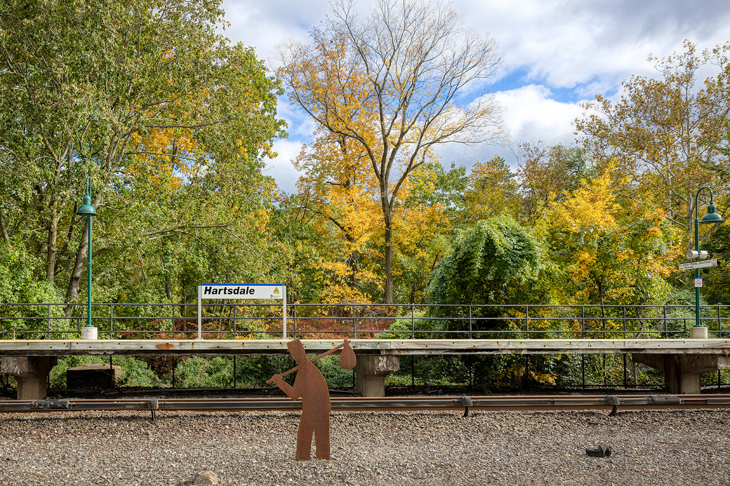 For more than thirty years Tom Nussbaum’s Workers and Travelers have adorned the Harlem Line stations of Hartsdale and Scarsdale. Born of the long American tradition of placing sculpted weathervanes atop barns and churches, Nussbaum’s figures break out of the expected rooster and horse motifs, and instead tell the story of the people that lived and worked around the Harlem Line.