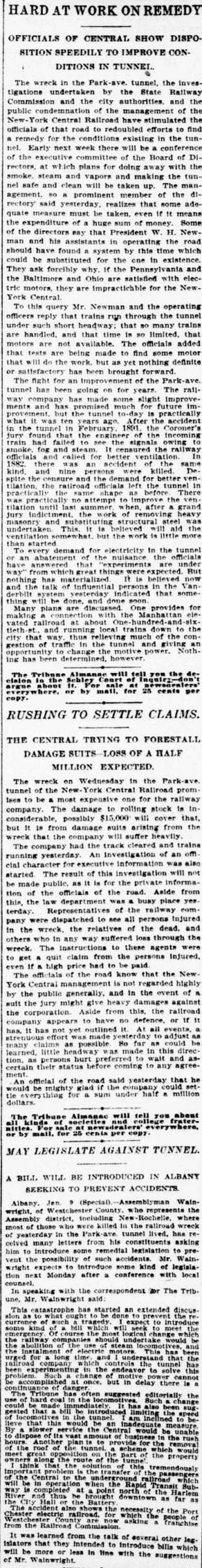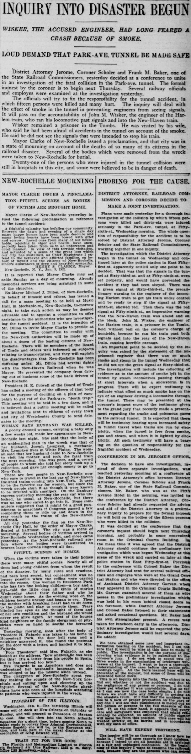 1902 Jan 10 Newspaper, Park Ave Wreck Coverage, NY Tribune