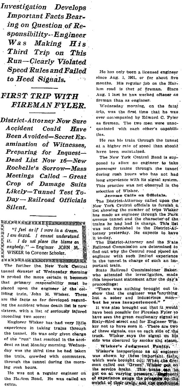 1902 Jan 10 Newspaper, Park Ave Wreck Coverage, The World