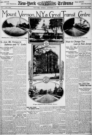 1913 Newspaper Article, Mount Vernon NY – A Great Transit Centre