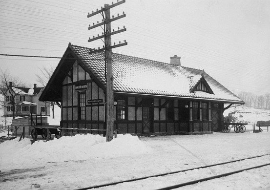 The two above photos were on a single postcard, showing the old and new stations at Harriman. The station at left was known as Turners, and was replaced with the station on the...